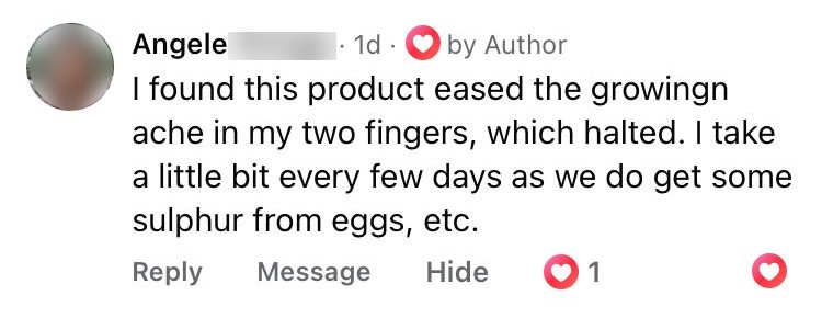 That is why I often recommend Pure Organic Sulfur Crystals. It helps lower inflammation and ease pain so they can feel more energized, feel better in their body, and stay active as they age."